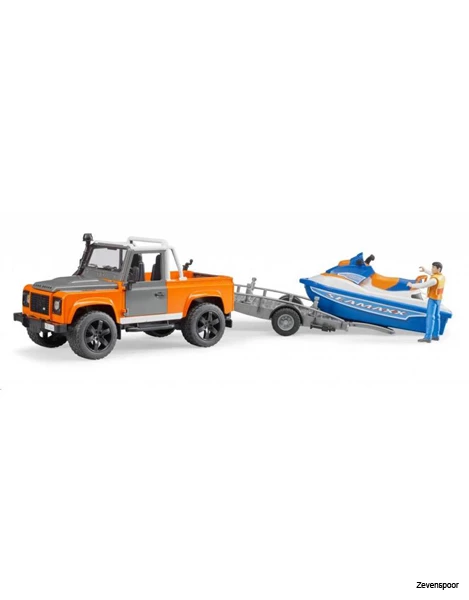 2599 Bruder Landrover Defender Pick Up Met Aanhanger En Waterscooter