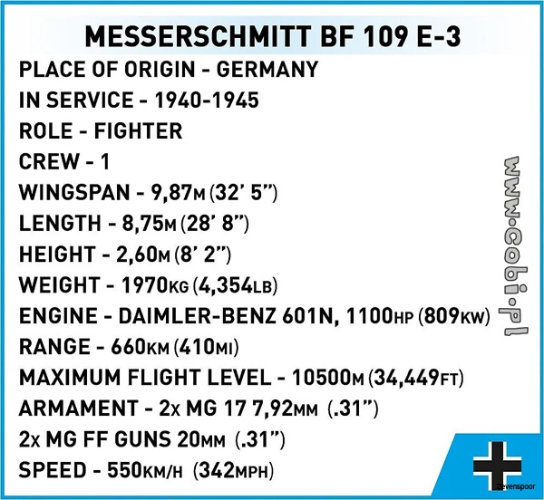 5727 Cobi WWII MESSERSCHMITT BF 109 E-2